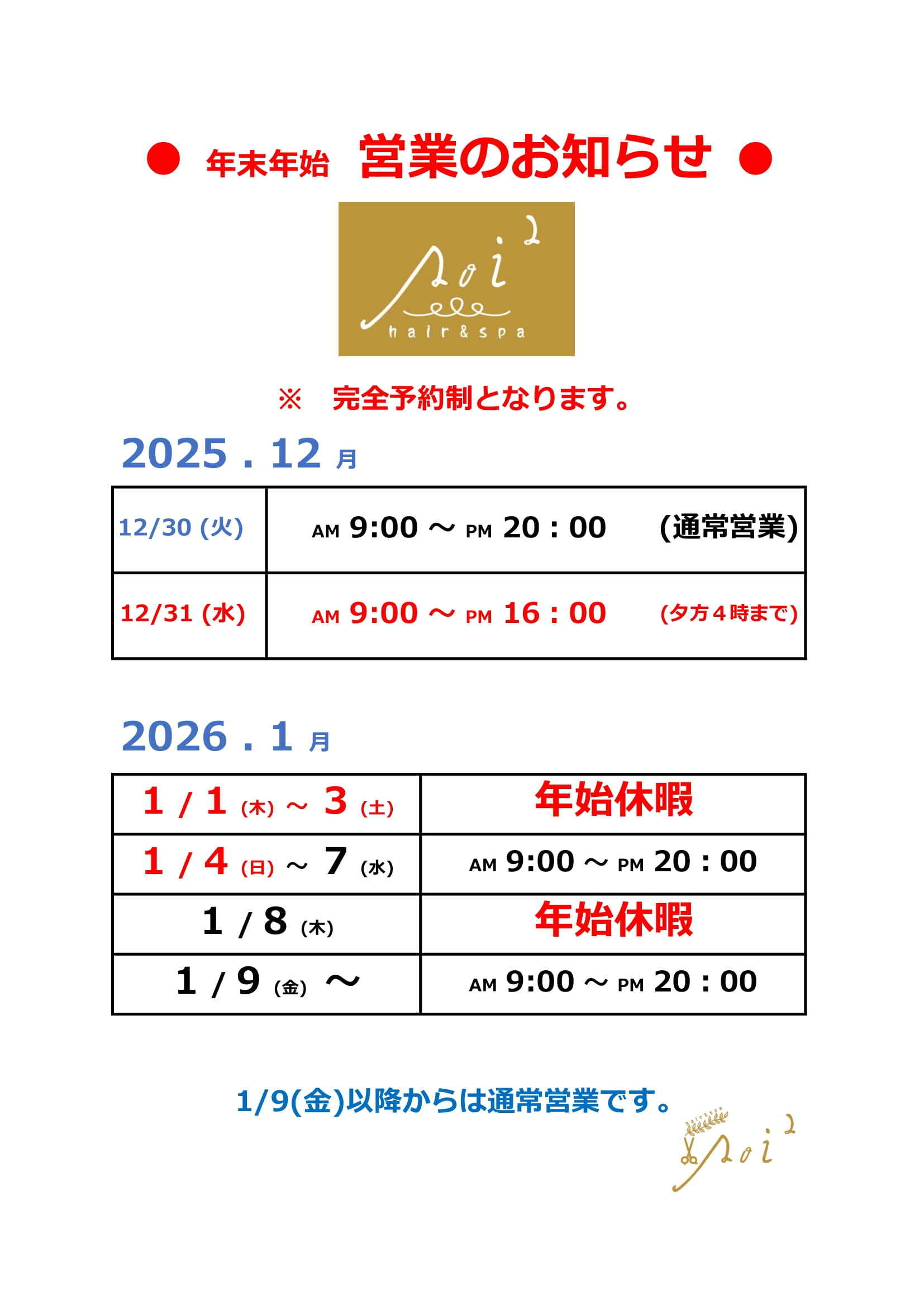 2025 . ~ 2026 .  年末年始の ご案内です  ♪